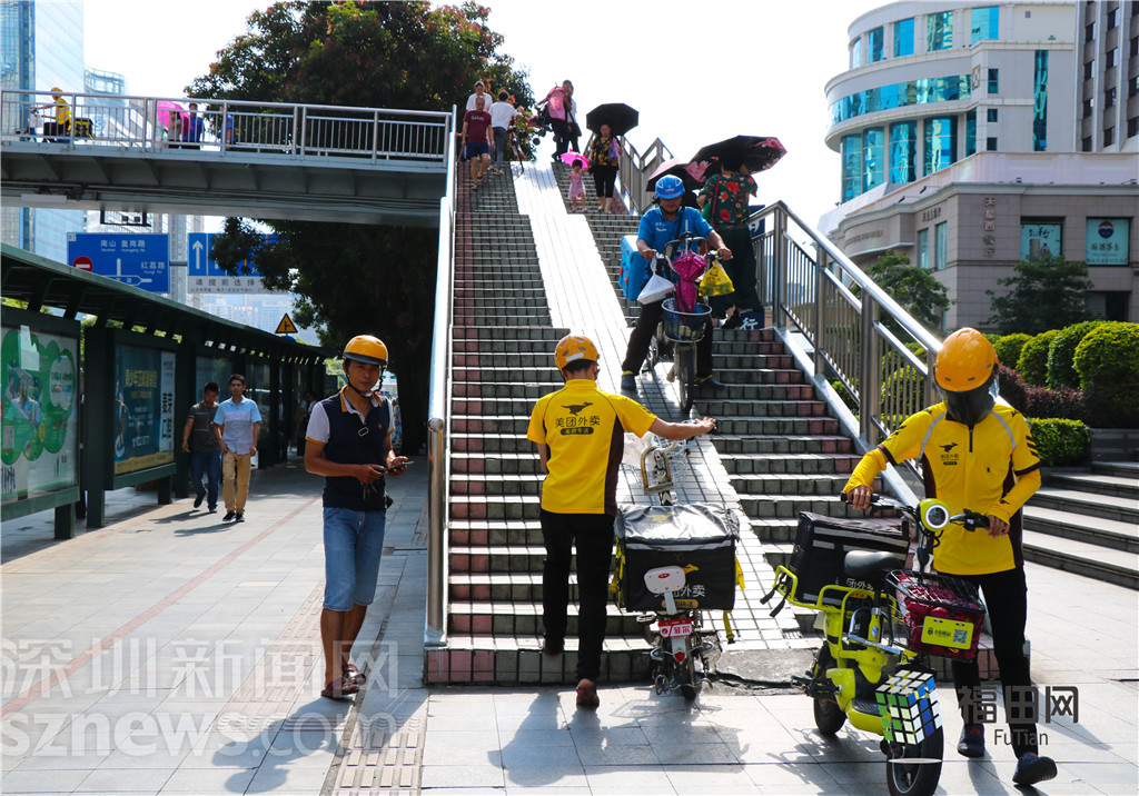 天橋上會(huì)有很多電動(dòng)車、自行車通過,上下很不方便。