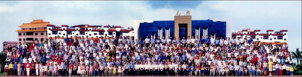 南嶺村村民在村委大樓前拍攝“全家福”(攝于2001年)