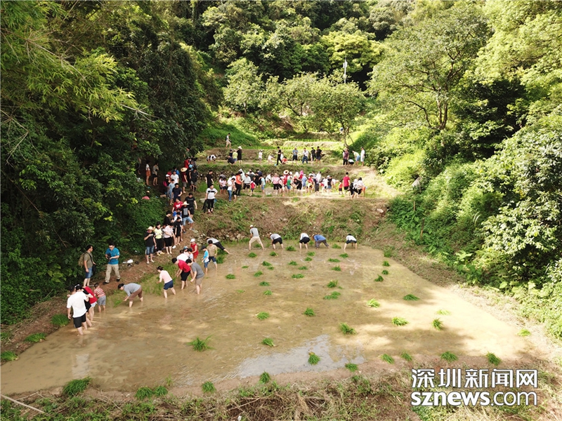 寸土寸金的南嶺村,一直保留著20畝水稻田。每年春種秋收時節(jié)的,當(dāng)?shù)睾⒆觽円驮缫严茨_上田的長輩一起勞作,感受“汗滴禾下土”的滋味。2018年8月2日,放暑假的南嶺村小朋友又和大人們一起下田插秧。