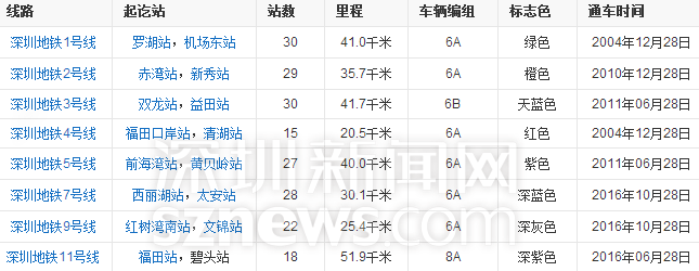 深圳地鐵目前正在運(yùn)營(yíng)的線路信息↑?