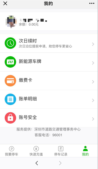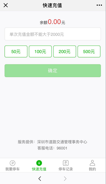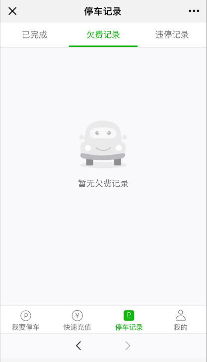 在這個(gè)界面還有“快速充值、停車(chē)記錄、我的”等導(dǎo)航入口