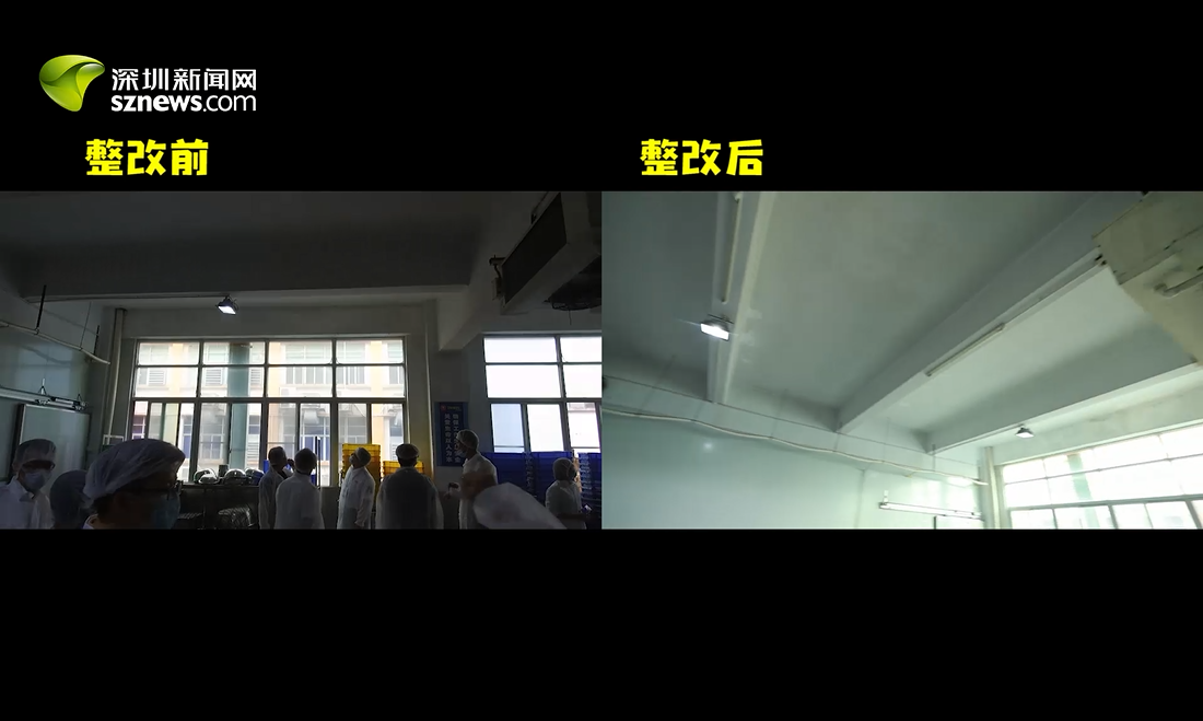 29日突查發(fā)現(xiàn),粗加工間“墻壁漏水長霉”“地面積水潮濕”。今日深圳新聞網(wǎng)回訪發(fā)現(xiàn),漏水和發(fā)霉部位已整改完畢,墻面未發(fā)現(xiàn)漏水和發(fā)霉現(xiàn)象。