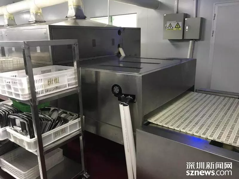 餐具洗消區(qū),消毒機溫度顯示121°,消毒15分鐘,符合要求。