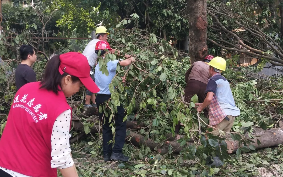 附近的某施工單位受到此次臺風(fēng)影響也很大,但是在救援過程中提供了力所能及的幫助。比如現(xiàn)場的吊車、運輸車等施工工具和建筑工地的一線工作人員,對于道路清理作業(yè)非常專業(yè)有效。連帶著附近的物業(yè)公司、安保公司、社區(qū)工作站等都紛紛加入?!熬κ怯邢薜?,但民力無窮?!碧祈樔A說,“這次的災(zāi)后修復(fù)工作,市民積極熱心地主動作為、主動參與也給我極大鼓舞。”