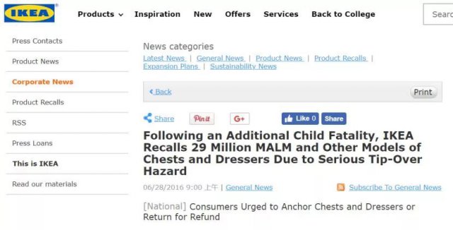 根據(jù)美國消費(fèi)者產(chǎn)品安全委員會的數(shù)據(jù),宜家當(dāng)時(shí)在全球召回了2300萬件該系列產(chǎn)品 -其中包括近300萬件在美國銷售的產(chǎn)品和110萬件在加拿大銷售的產(chǎn)品。
