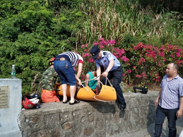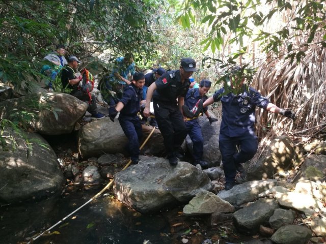 到現(xiàn)場后,民警了解發(fā)現(xiàn)該男子在爬山的過程中不小心踩到苔蘚摔倒受傷,當(dāng)場倒地不起,無法動彈。情況緊急,四周山路陡峭,120急救人員短時間內(nèi)難以到達(dá)進(jìn)行救治。這時,葉孟庭等民警當(dāng)機(jī)立斷,將同行救援隊(duì)員分成兩組,用擔(dān)架將傷者一步步接力抬下山。此處位于亂石山澗中,隊(duì)員只能齊心協(xié)力抬著擔(dān)架一點(diǎn)一點(diǎn)小心挪移,坡陡石滑,空氣悶濕,加之荊棘擋道,隊(duì)員們汗如雨下,整整花了2個多小時才將擔(dān)架安全抬到盤山公路懸崖邊,隊(duì)員們個個衣衫濕透,手腳上的擦劃痕跡清晰可見。