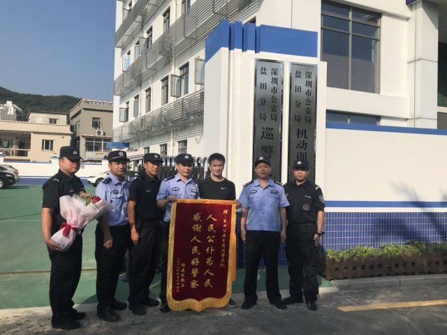 "我到這兒來就是為了感謝當(dāng)時的救命之恩!"9月21日下午,一名男子來到深圳市公安局鹽田分局巡警大隊(duì),手捧一面繡著"人民公仆為人民,感謝人民好警察"的錦旗,撲通一聲跪下,激動得淚流滿面。在場民警趕緊攙扶起該男子,有人認(rèn)出這位來訪男子正是今年上半年因傷被大隊(duì)民警援救的楊先生。