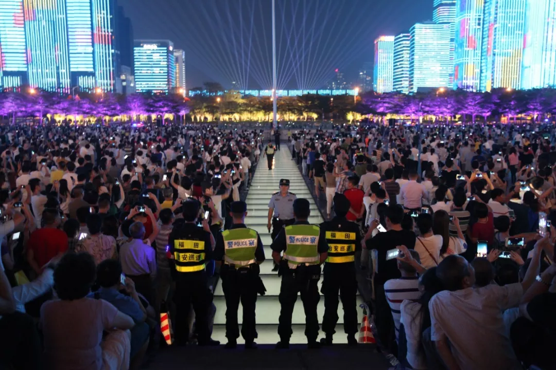 “燈光秀”活動(dòng)正式表演首日,現(xiàn)場觀演人數(shù)約54300人,福田公安分局出動(dòng)1000名警力在現(xiàn)場及周邊維持秩序,確保活動(dòng)順序舉行。