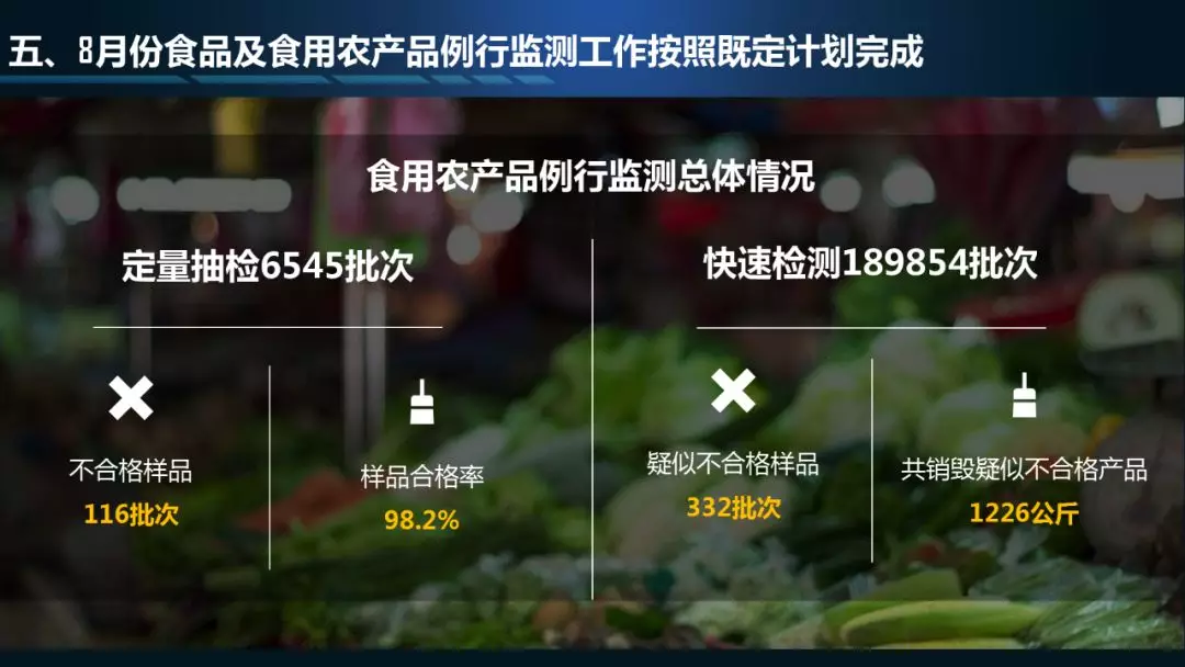 8月份食品及食用農產品例行監(jiān)測工作按照既定計劃完成