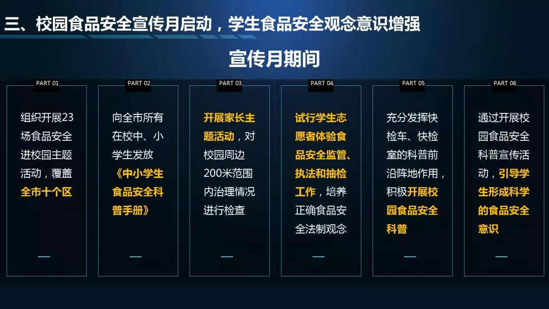 第一個“3”指“九號查酒”節(jié)前專項行動、校園食品安全宣傳月、深圳市食藥志愿者總隊開展打擊非法售賣活禽專項執(zhí)法行動等情況通報;
