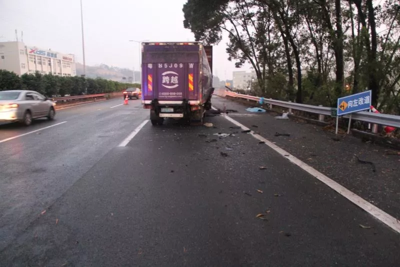 04時(shí)35分,其駕車沿南光高速由南往北方向行駛至塘明路段,被后方的粵B5J0**號(hào)輕型廂式貨車追尾。