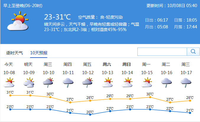 預(yù)計(jì)8~9日多云間晴天,有輕霧和輕度霾,氣溫23~31 ℃。10~12日受冷空氣影響,氣溫下降,沿海和高地陣風(fēng)7~8級(jí),12日最低氣溫降至20 ℃左右,有短時(shí)小雨,雨量不超過(guò)10毫米,不足以有效緩解持續(xù)干燥。13~14日多云間晴天。
