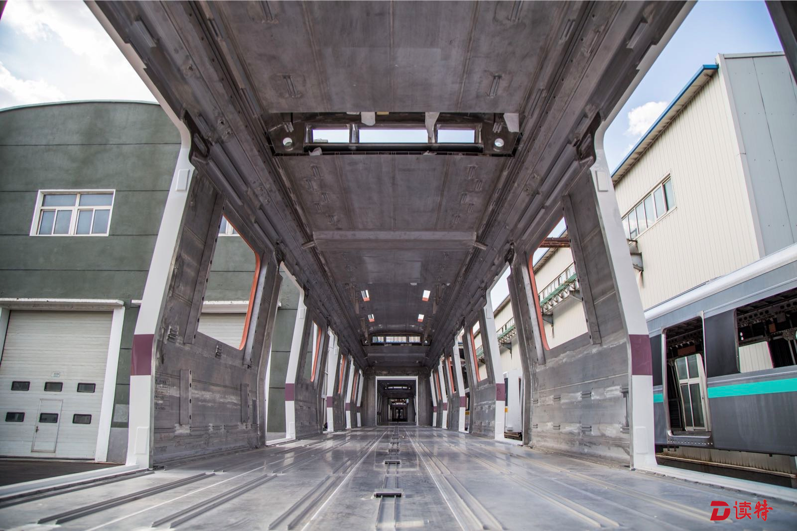 在中國中車長春軌道客車有限公司廠區(qū),深圳地鐵9號線西延線訂購的地鐵列車車身采用更為堅固耐用的鋁型材。
