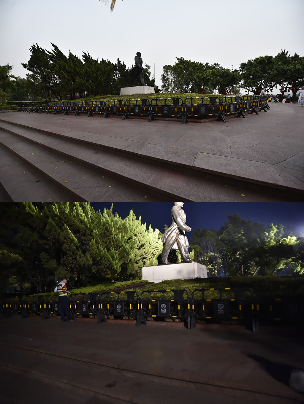 蓮花山觀景臺,面對鄧小平雕塑左側(cè)沒有垃圾殘留,落葉也被清掃干凈
