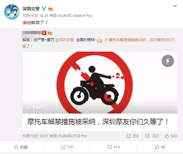 深圳從未如網(wǎng)上所說(shuō)要對(duì)摩托車(chē)解禁,并將繼續(xù)實(shí)施禁摩管理政策。目前,對(duì)于在原關(guān)外部分交通不便的偏遠(yuǎn)地區(qū),為了市民出行的便利,是否適度放開(kāi)“禁摩令”我們也在進(jìn)一步研究之中。同時(shí),市民可以在網(wǎng)上提出合理的管理建議和意見(jiàn),為將來(lái)深汕合作區(qū)試點(diǎn)多元化管理建言獻(xiàn)策,現(xiàn)深圳暫不考慮解禁。