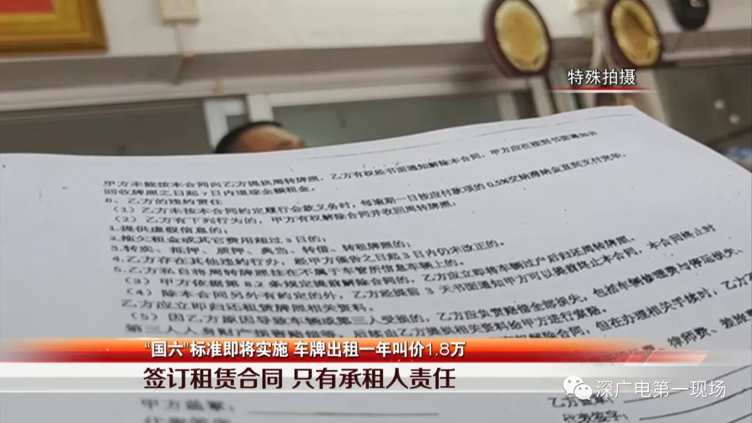 記者調(diào)查發(fā)現(xiàn),租深圳車牌成了很多外地車主,應(yīng)對(duì)“國(guó)六”標(biāo)準(zhǔn)落地的方法之一。所謂的租深圳牌,就是將名下的車登記在有深圳車牌指標(biāo),還沒有購(gòu)車的人名下。