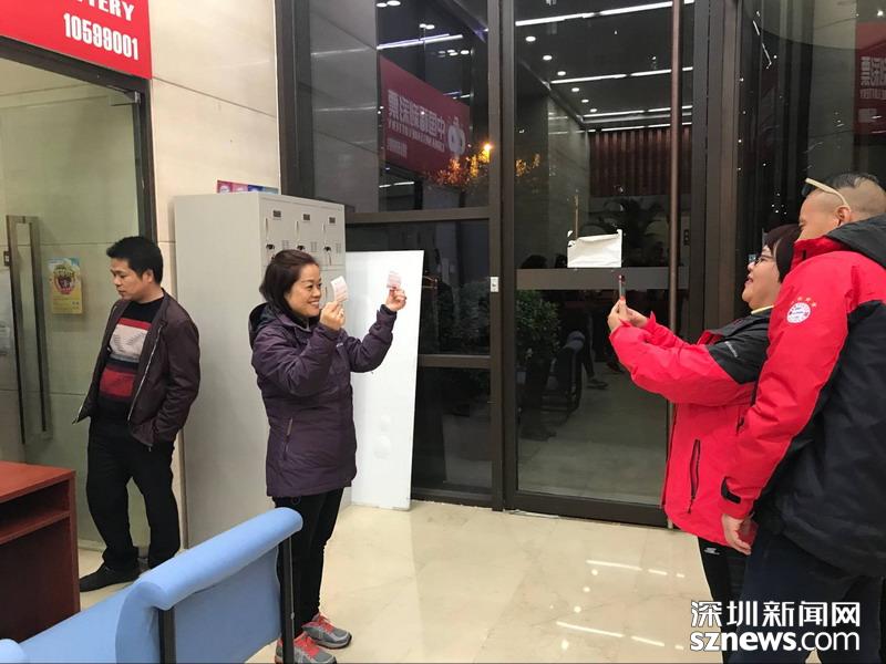 觀摩團(tuán)成員現(xiàn)場購買彩票并合影留念
