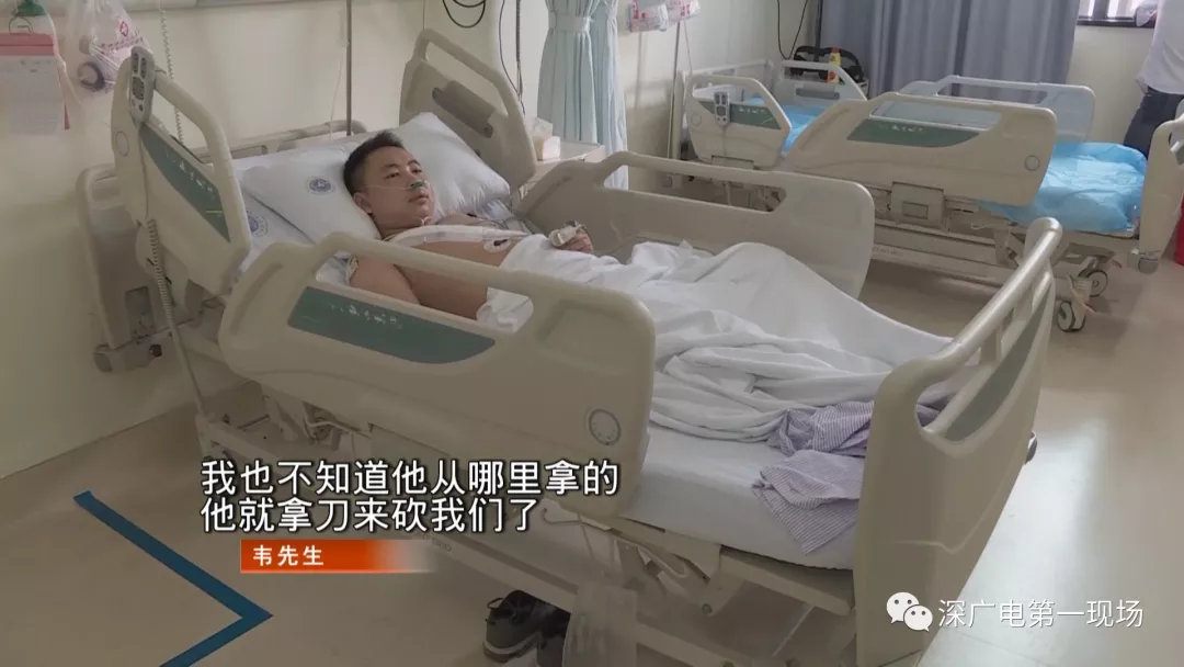 經(jīng)過急救,傷者韋先生已被轉(zhuǎn)往胸外科接受治療。韋先生說,昨天晚上因?yàn)榈秱朐旱目刹恢顾粋€(gè)人。
