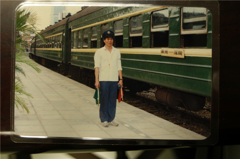 90年代,廣深線開行的列車為綠皮火車。圖中站內指揮員引導列車