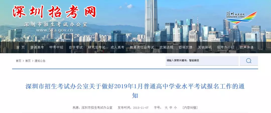 深圳新聞網11月12日訊(記者 劉婷)近日,深圳市招生考試辦公室發(fā)布了《深圳市招生考試辦公室關于做好2019年1月普通高中學業(yè)水平考試報名工作的通知》,明確要求:報名時間為2018年11月12日至17日,其中12日至14日為網上預報名時間,15日至17日為報名點現(xiàn)場報名確認時間。