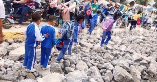 另有網友跟帖表示:同學們求學路坎坷,看得揪心!從現(xiàn)場圖可以看到,學生上下學都要穿過工地。路面被挖開,道路邊上只留下很窄的一條小道。上下學高峰期,成群結隊的學生在碎石穿行,旁邊小道上行人、三輪、電動單車堵成一鍋粥,存在很大的安全隱患。