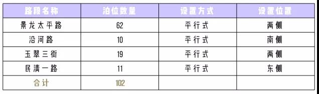其中,桂月路擬設(shè)置泊位60個(gè),樟閣路設(shè)置39個(gè),榮福路設(shè)置112個(gè),溢佳路設(shè)置59個(gè),新丹路設(shè)置100個(gè),福慶路設(shè)置27個(gè),翠幽路設(shè)置79個(gè),景龍?zhí)铰吩O(shè)置62個(gè),沿河路設(shè)置10個(gè),玉翠三街設(shè)置19個(gè),民清一路設(shè)置11個(gè),華天路設(shè)置47個(gè),永樂路設(shè)置21個(gè),簡(jiǎn)上路設(shè)置63個(gè),上芬小學(xué)路設(shè)置18個(gè),新牛路設(shè)置21個(gè),油聯(lián)路設(shè)置18個(gè),黎光工業(yè)路設(shè)置22個(gè)??偣?88個(gè)“宜停車”泊位。