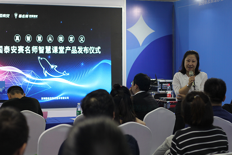 高交會開幕首日,“國泰安賽名師智慧課堂產品發(fā)布儀式”在高交會新產品新技術發(fā)布活動中閃亮登場,國泰安集團執(zhí)行副總裁、首席運營官丁艷博士出席發(fā)布儀式,介紹了國泰安賽名師智慧課堂在助推教育信息化2.0、推進教育教學方式改革中的重要作用,并著重闡釋了賽名師智慧課堂“真智慧”的含義,獲得與會嘉賓高度認同。