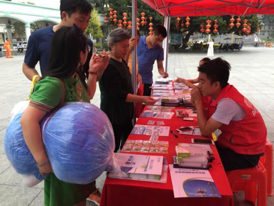 市民在瀏覽輻射、防詐騙宣傳手冊