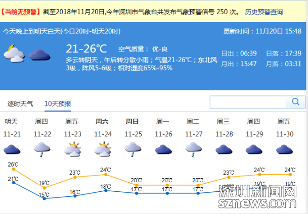 市氣象局發(fā)布未來(lái)十天天氣預(yù)報(bào)(數(shù)據(jù)更新于11月20日15時(shí)48分)