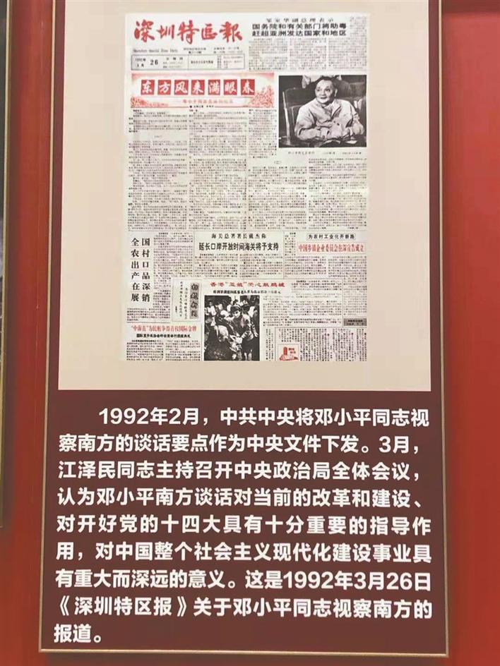 1992年3月26日刊登通訊《東方風(fēng)來(lái)滿眼春》的《深圳特區(qū)報(bào)》圖片在“關(guān)鍵抉擇”主題展區(qū)十分醒目。1992年2月,中共中央將鄧小平同志視察南方的談話要點(diǎn)作為中央文件下發(fā)。時(shí)任深圳特區(qū)報(bào)副總編輯陳錫添全程跟隨記錄鄧小平視察深圳的活動(dòng),寫下了這一影響海內(nèi)外的著名新聞通訊。