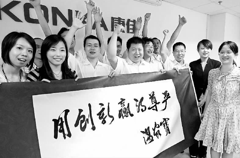溫家寶總理為康佳集團的親筆題詞激勵著康佳員工繼續(xù)發(fā)揚創(chuàng)新精神!許光明 攝