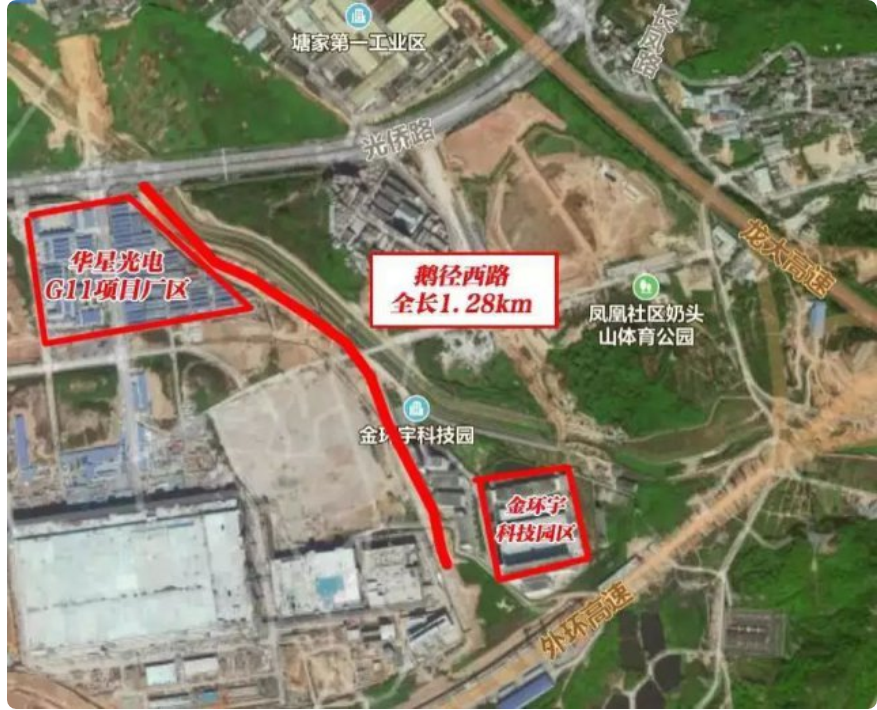 鵝徑西路位于光明區(qū)高新技術(shù)產(chǎn)業(yè)園區(qū)西片區(qū)內(nèi),北起光僑路,沿華星光電 G11項(xiàng)目廠區(qū)東側(cè)由北向南布設(shè),設(shè)計(jì)終點(diǎn)與長鳳路(規(guī)劃中)相交,整體呈南北走向。全長1.28km,是一條城市支路,設(shè)計(jì)速度20km/h,雙向兩車道。目前,鵝徑西路全部完成機(jī)動(dòng)車道、人行道、綠化、路燈、交通標(biāo)牌標(biāo)線,道路通行后方便高新技術(shù)產(chǎn)業(yè)園片區(qū)居民和企業(yè)出行。在金環(huán)宇科技園區(qū)上班的小伙伴,以后直接從光僑路轉(zhuǎn)到鵝徑西路就能到公司,全長1.28公里,上班方便多了。