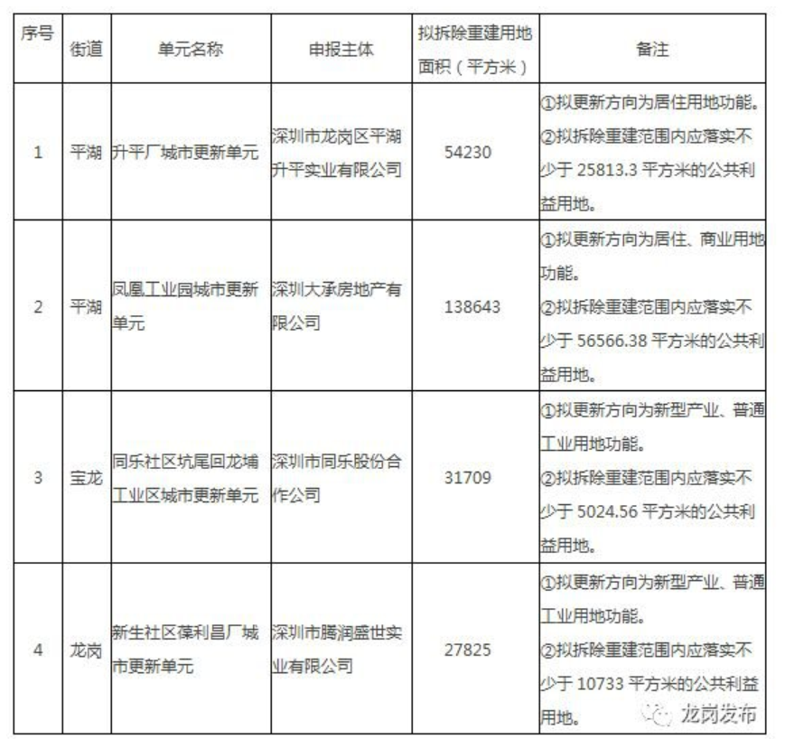 本表所列的城市更新單元須按照城市更新相關(guān)政策完成城市更新單元規(guī)劃編制及項(xiàng)目實(shí)施主體確認(rèn)等工作后方可實(shí)施開(kāi)發(fā)建設(shè)。