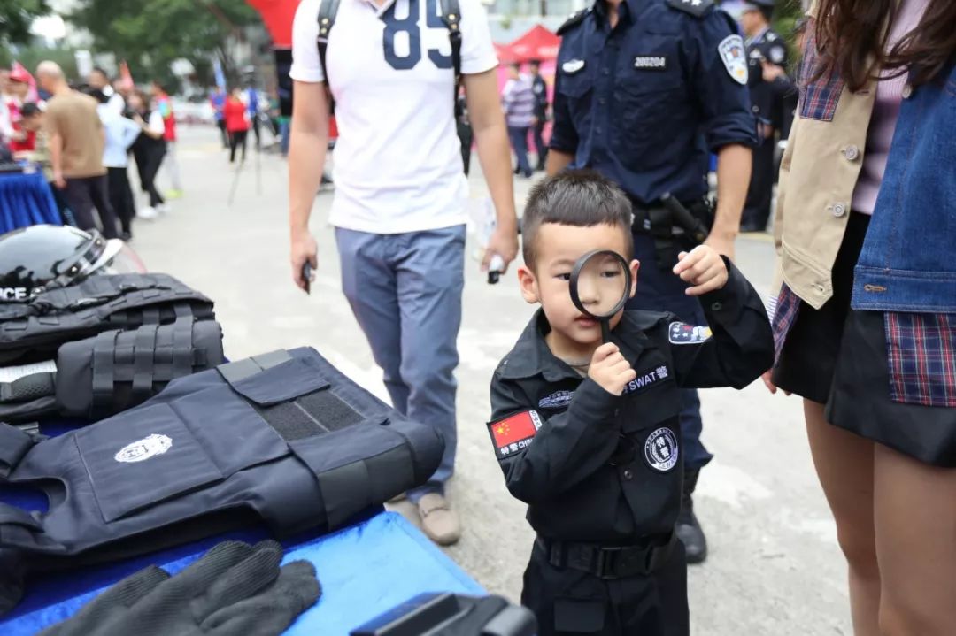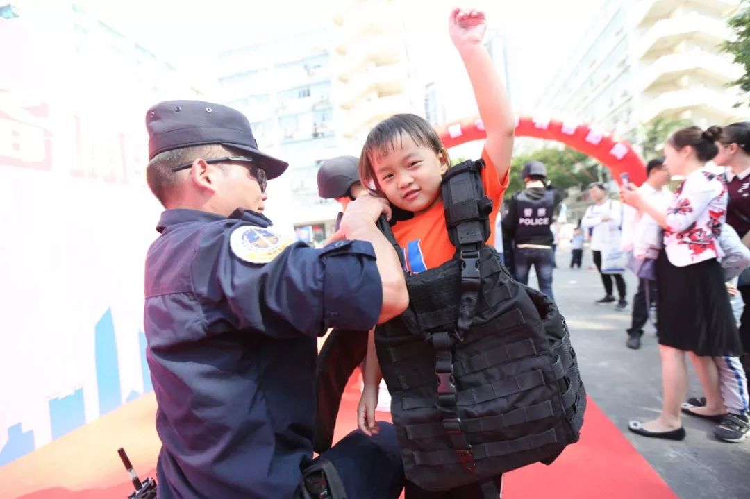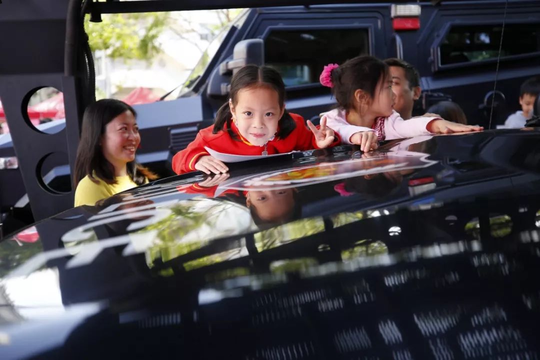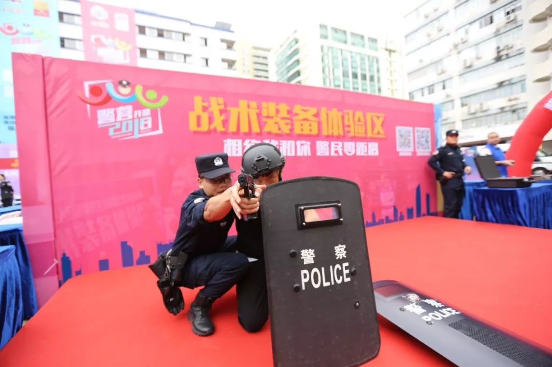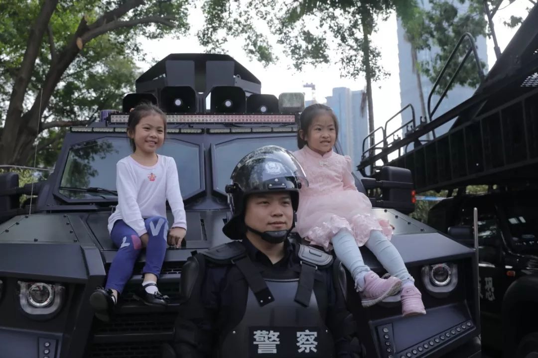 防暴盾牌、槍支警械威武霸氣,隊(duì)列棍術(shù)、擒拿格斗輪番上陣。很多人興致勃勃地穿戴警用裝備,頭戴鋼盔、身穿警服,登上反恐敞篷車拍照留念,圓夢(mèng)警察夢(mèng)想。