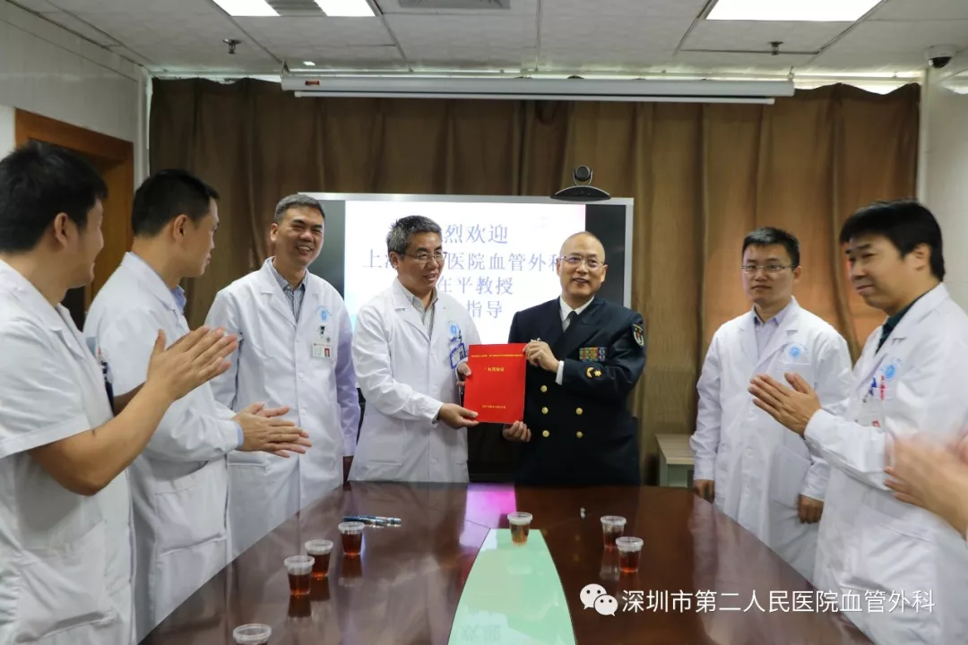 2018年11月30日,中國人民解放軍海軍軍醫(yī)大學附屬長海醫(yī)院血管外科、心臟瓣膜疾病微創(chuàng)診治中心主任,上海市血管系統(tǒng)疾病臨床醫(yī)學中心主任,全軍血管外科研究所所長,中國醫(yī)師協(xié)會腔內血管學分會(二級)主任委員,國際知名血管外科專家景在平教授,來到深圳市第二人民醫(yī)院(深圳大學第一附屬醫(yī)院)(以下簡稱“我院”)進行座談、臨床查房、會診以及向全市住院醫(yī)師規(guī)培學員、教師與基地管理人員進行專題學術講座。