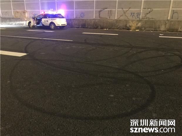 在“玩車”現(xiàn)場(chǎng),民警發(fā)現(xiàn)大量車輛高速打轉(zhuǎn)、緊急剎車留下的痕跡