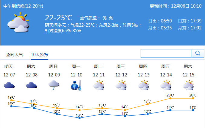 市氣象局發(fā)布未來十天天氣預(yù)報(bào)(數(shù)據(jù)更新于12月06日10時(shí)10分)