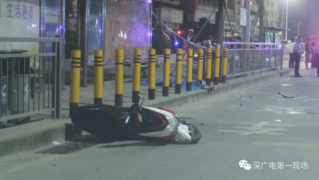 電動(dòng)車深夜飛馳撞上公交站臺(tái)