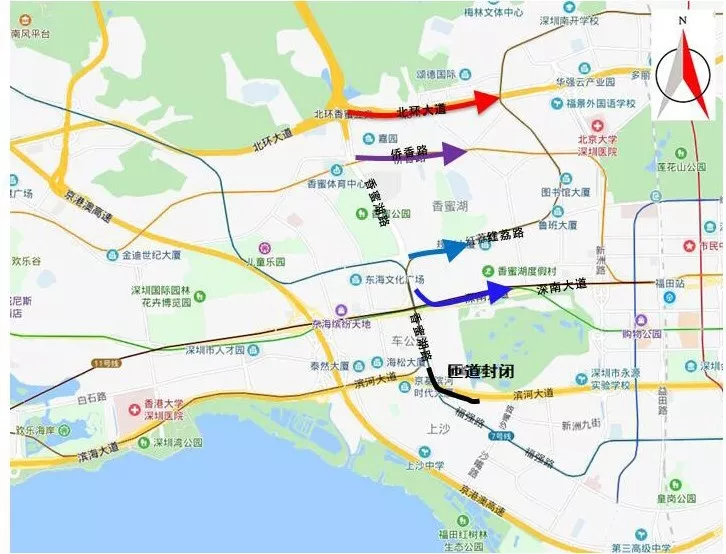 ①原經(jīng)此封閉路段通行的車輛,可改沿紅荔路、深南大道、福強路或周邊其它道路通行。