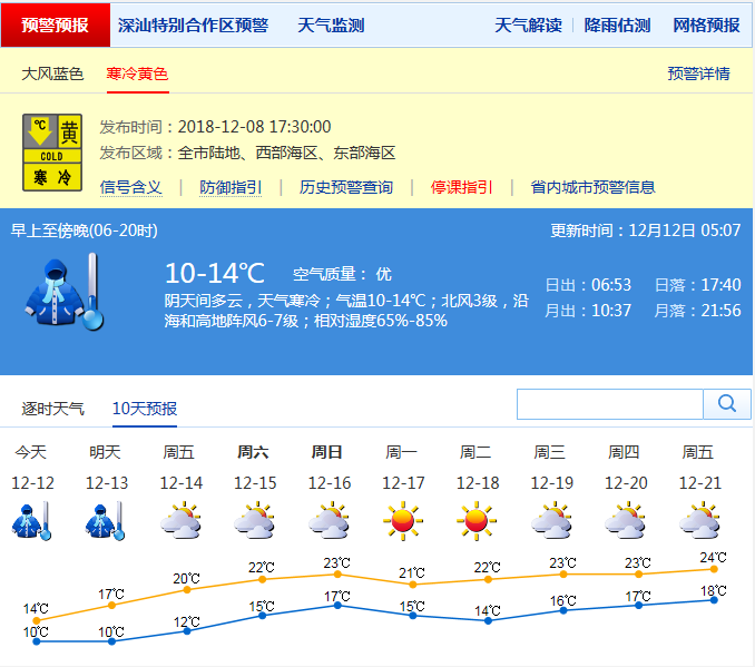 市氣象局發(fā)布未來(lái)十天天氣預(yù)報(bào)(數(shù)據(jù)更新于12月12日5時(shí)7分)