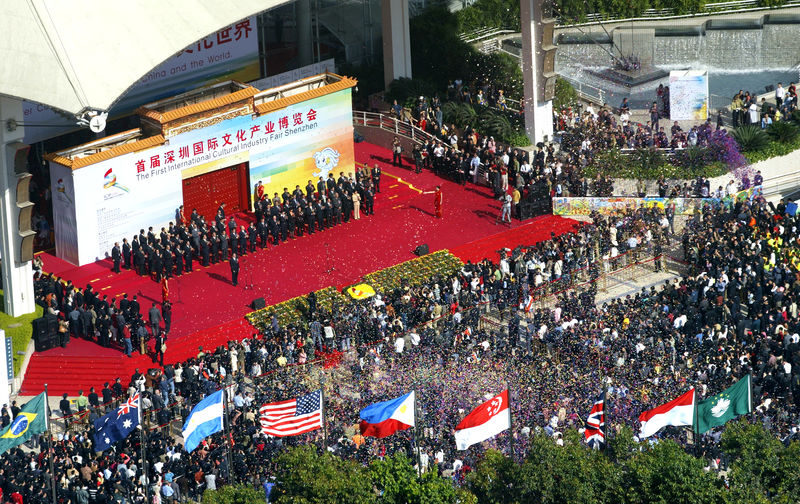 2004年,首屆深圳國際文化產(chǎn)業(yè)博覽會(huì)開幕式現(xiàn)場。丁慶林?jǐn)z