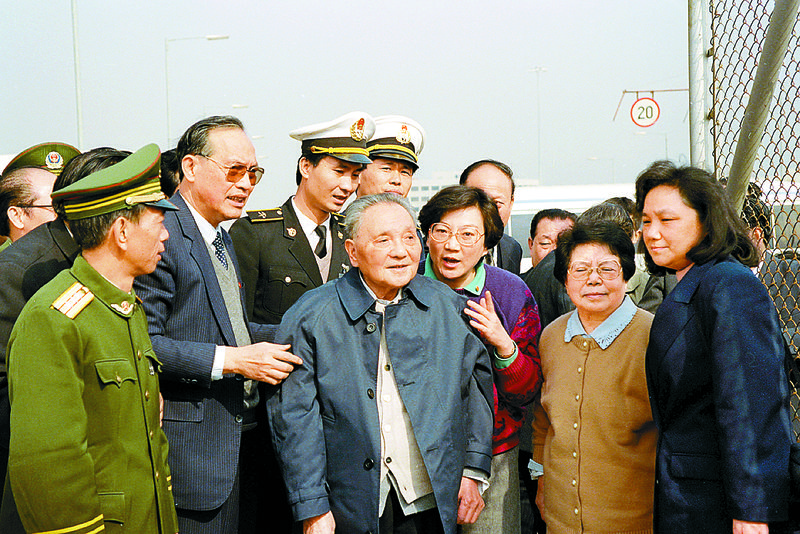 1992年,鄧小平同志在深圳皇崗口岸常情眺望香港。