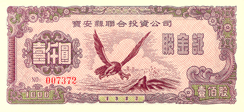 1983年中國(guó)寶安集團(tuán)發(fā)行的新中國(guó)第一張股票。