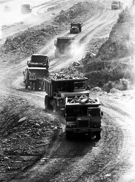1994年修建濱海大道時(shí)泥頭車(chē)運(yùn)泥填海。鄭東升攝