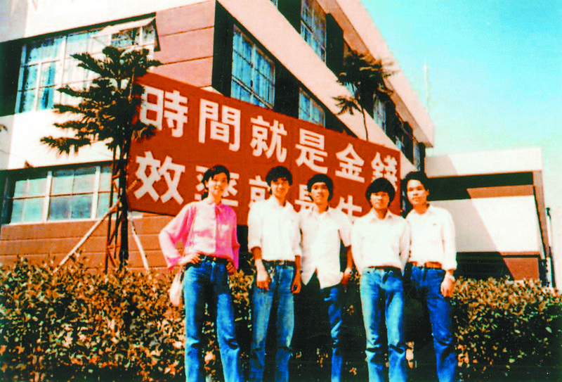 20世紀(jì)80年代初,蛇口青年工在標(biāo)語牌下留影。