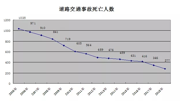 今年以來截止12月21日,我市的道路交通事故死亡人數(shù)實現(xiàn)了17.31%的大幅下降,預計全年全市道路交通事故死亡總人數(shù)將低于300人,在全市機動車保有量繼續(xù)增長的情況下,預計年萬車事故死亡率約為0.9左右。
