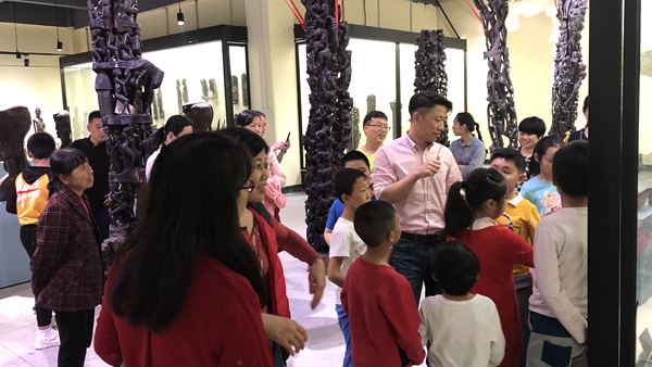 也許是被熱情的笑容和鼓舞所感染,天真活潑的小朋友們一到現(xiàn)場便與非洲大哥哥大姐姐們迅速的打成一片,毫無距離感。在非洲哥哥姐姐們的鼓聲引領(lǐng)下,同學(xué)們首先來到非洲文化博物館,由于大家都是第一次接觸非洲藝術(shù)品,哇哇哇的贊嘆聲此起彼伏,博物館工作人員瞬間被大家緊緊包圍,對各種藝術(shù)品提出了無數(shù)個五花八門的問題,真正成了“十萬個為什么”“案發(fā)現(xiàn)場”。“馬賽人為什么住牛糞房子啊?”“木頭為什么是黑色的啊”“坐了酋長椅是不是就可以做酋長了?”……由于同學(xué)們第一次這么近距離接觸非洲文化,實在是太好奇太熱情,與各種藝術(shù)品親密接觸拍照、坐酋長椅體驗“做酋長”的感覺、甚至工作人員也“網(wǎng)開一面”讓大家騎在大象和獅子木雕上盡情玩耍,導(dǎo)致原本計劃半小時的參觀時間足足一個半小時才結(jié)束。