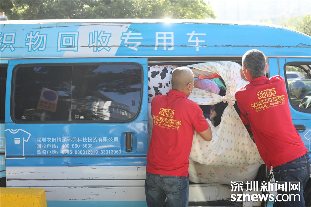 車停人下,工作人員打開織物回收箱的鎖扣后,將平時回收的床單鋪在取衣口前,將市民投入回收箱的衣物放置在床單上。放置完成后,工作人員拍照打卡,并做好記錄,然后打好包后便塞入車中。據觀察,車輛僅前排可坐人,包含司機在內只有兩個座椅,所有后座皆為衣物放置區(qū)域。