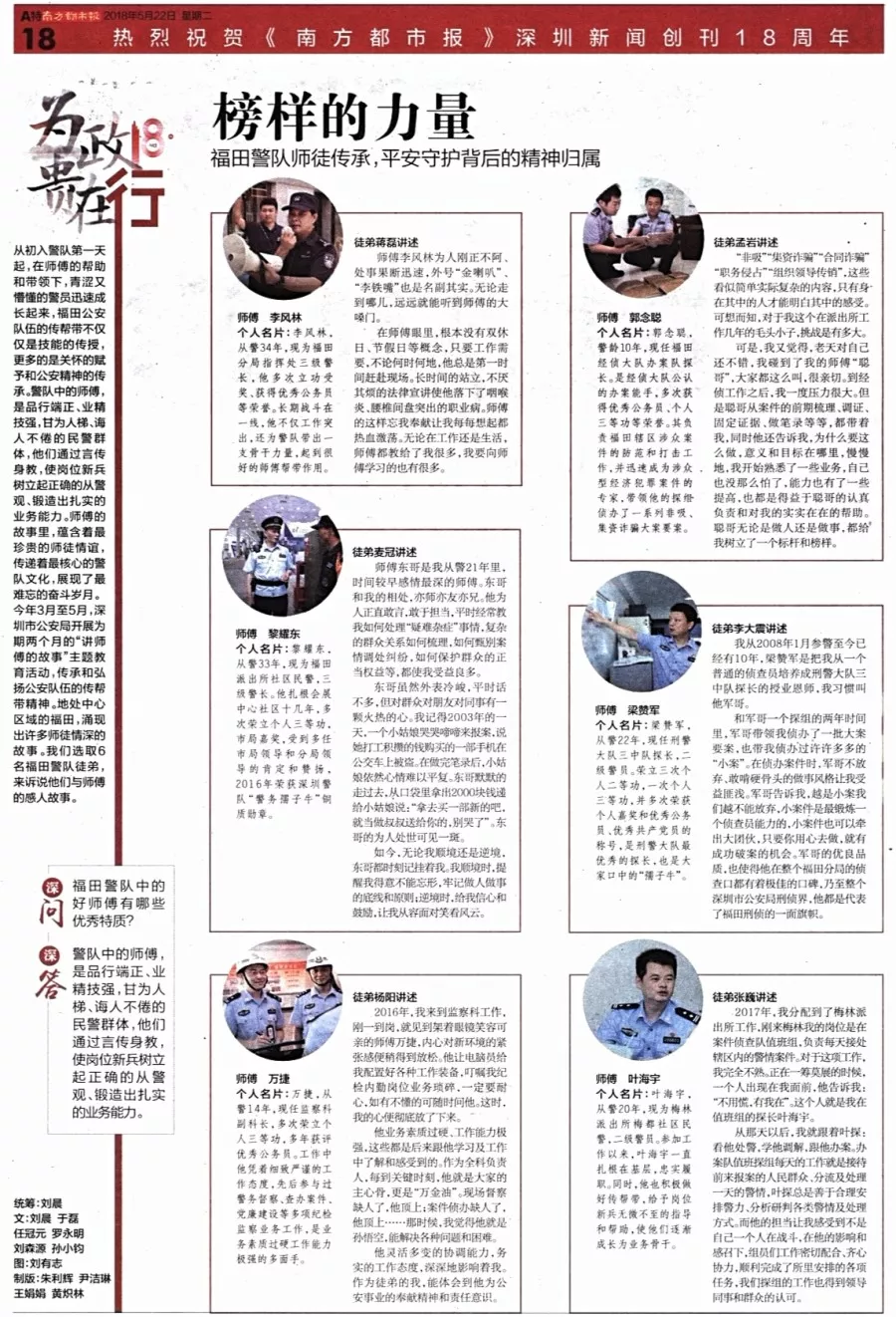 ★★薪火相傳,講述新時(shí)代警營師徒故事。他們是師傅更是帶頭人,榜樣的力量無窮。福田警隊(duì)高度重視傳幫帶,繼承光榮傳統(tǒng),鍛造業(yè)務(wù)能力,傳遞戰(zhàn)友情誼。