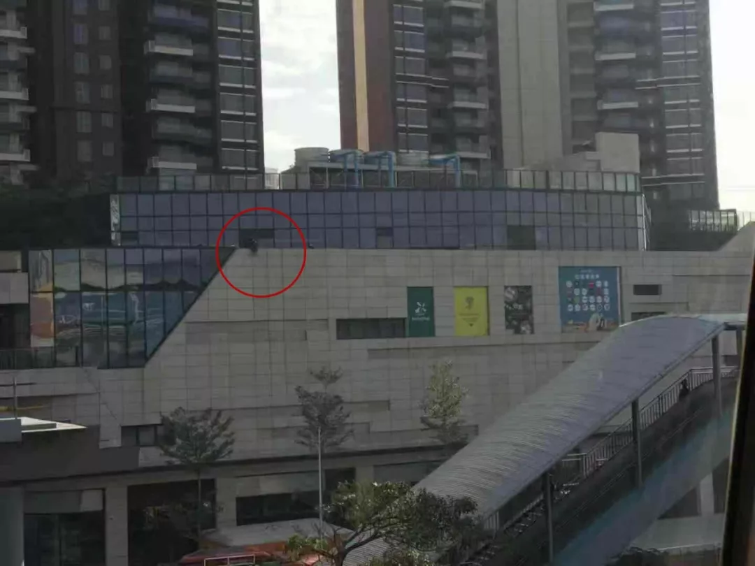 昨天下午2點多,市民崔先生向我們節(jié)目爆料稱,他在深圳橫崗六約地鐵站,發(fā)現(xiàn)地鐵站對面的中影國際廣場4樓平臺上,有一名男子抱著一名小孩聲稱要跳樓。于是,崔先生抓拍下了這驚險一幕。